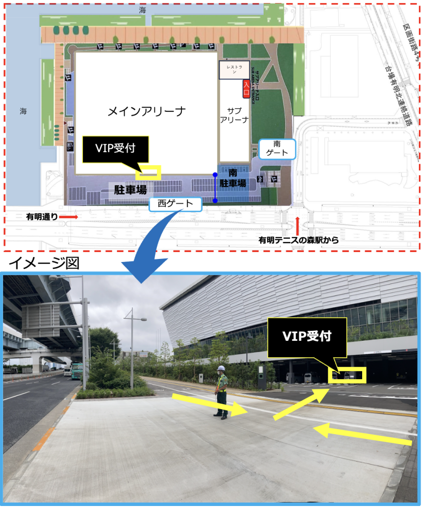 - 1階席のチケットをお持ちの場合もこちらの出入り口からVIPとアリーナを行き来してください。