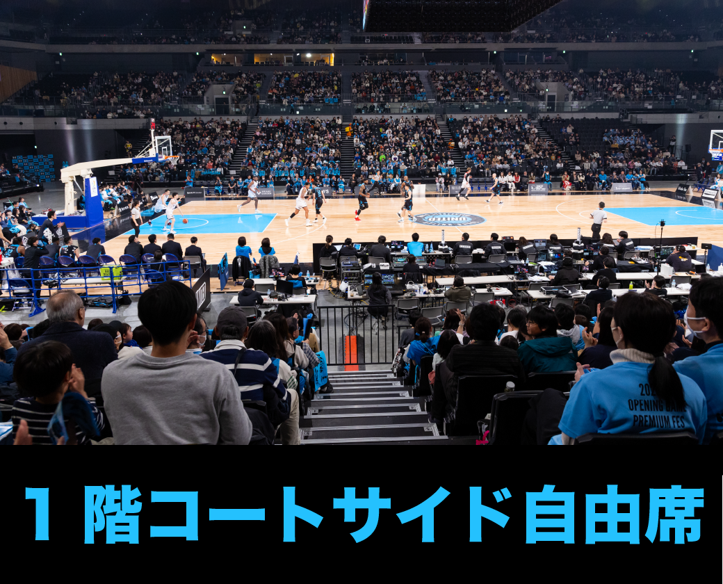 ※対象席種:プレミアムベンチ横指定席H/A、プレミアムエンド H/A 1-2列目、プレミアムサイド 1-2列目、1階コートサイド指定席S、1階コートサイド指定席