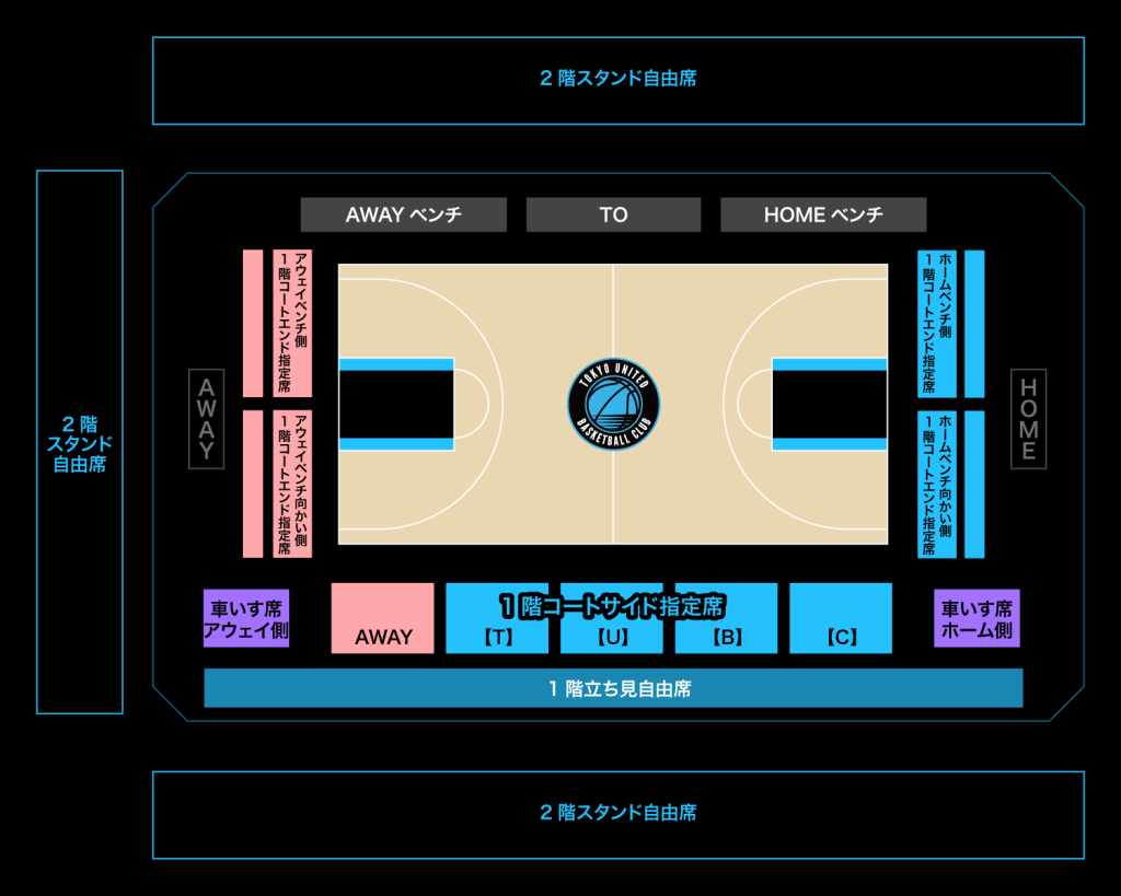 ※1階コートサイド指定席は3列目まで販売いたしますが、段差はございませんので予めご了承ください。